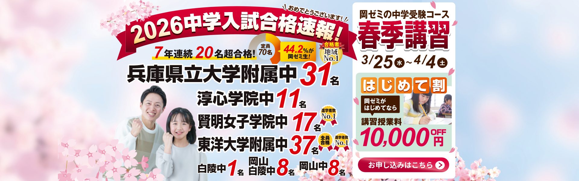 岡ゼミの春季講習 3月24日(火)〜4月4日(土) 【少人数制 クラス授業】 …
