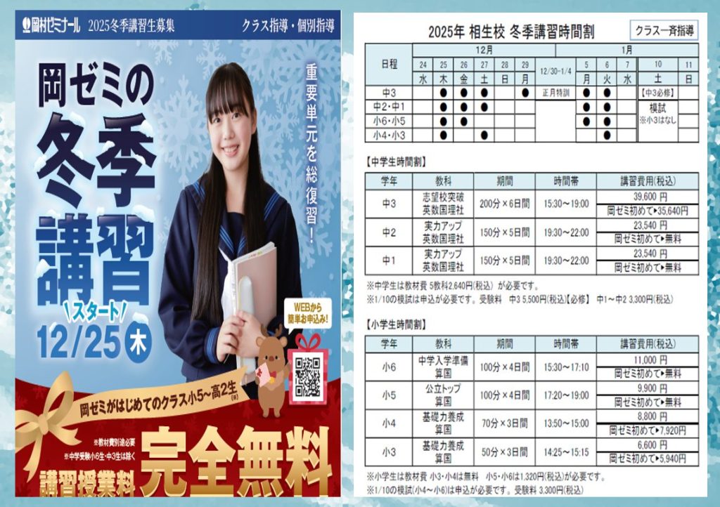 そして岡村ゼミナールでも、冬季講習がまもなく開始します。