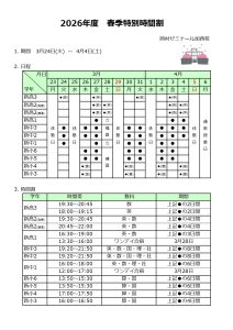 クラス授業の時間割は下記をご覧ください