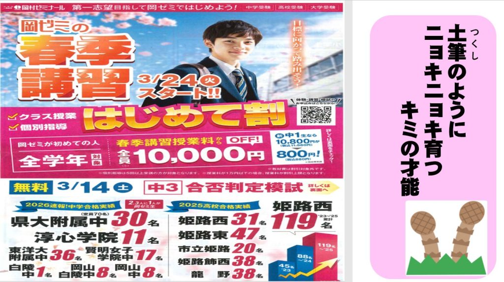 ぜひこの機会に岡ゼミの春季講習にご参加ください!😊